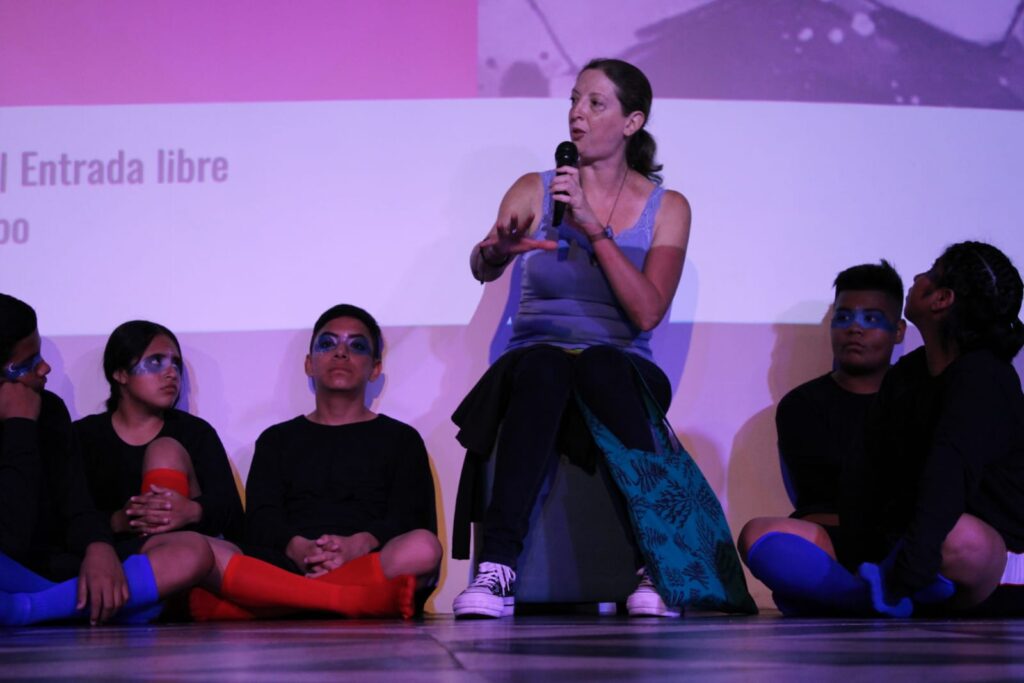La voz. El lenguaje es cuerpo porque el lenguaje está totalmente anclado al tema la voz ¿no? incluso cuando estamos pensando en este monólogo interno (refiriéndose a cuando se quiere decir algo, pero no se dice) es sonido, y hay una reacción en el cuerpo.
